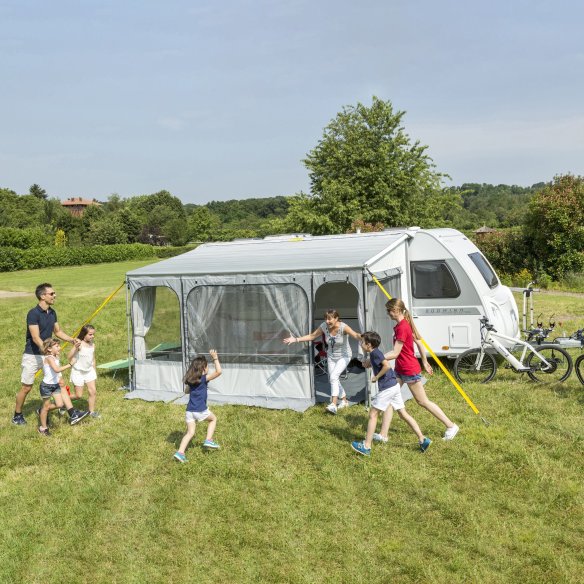 Die Markise basiert auf Fiamma Caravanstore. Das Tuch ist mit dem Reißverschlusssystem ZIP für eine einfache und schnelle Befestigung ausgestattet.