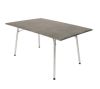 Die Tischplatte hat keine umlaufenden Kanten, so dass Wasser und Schmutz einfach ablaufen kann und die Reinigung sehr einfach wird. Das Plattenmaterial ist UV-beständig, voll wetterfest, bruch- und schlagfest, zigarettenglutfest und hitzebeständig bis zu 180 °C.