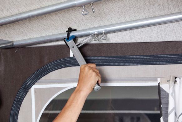 Die 3. Generation vom Hercules – einem einzigartigen Werkzeug zum Abspannen Ihres Vorzelts und damit einer korrekt gespannten Zeltplane. Auf diese Weise werden Windgeräusche vermieden und eine wesentlich höhere Stabilität erreicht. Außerdem trägt es durch eine gleichmäßige Belastung aller Teile zu einer längeren Lebensdauer Ihres Vorzelts bei. Für die Klemmbacken wurde ein verbessertes Material gewählt, das für stärkeren Halt am Gestänge sorgt. Durch eine einfache Drehung kann der Hercules auf alle Gestängestärken zwischen 22 und 32 mm eingestellt werden. Hinzu kommt ein integriertes Spannsystem, durch das sichergestellt ist, dass das Werkzeug sofort fasst.