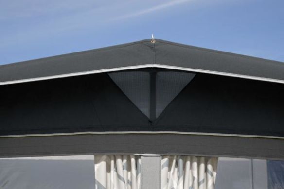 Das für die Vorder- und Seitenwände verwendete "Isacryl"-Gewebe ist leicht, robust aber vor allem atmungsaktiv, was zusammen mit der Textilunterseite im Dach (von außen beschichtet) für ein angenehmes Raumklima sorgt.