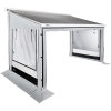 Speziell für den Fiat Ducato mit H2-Dach konzipiertes Seitenteil-Paar mit Auszug 2,5 m, in der Farbe RAL 9002. Mittels eines Klemmprofils werden die Seitenwände fest mit dem Markisentuch verbunden.