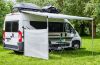 Der sich selbst aufrollende Windschutz aus pflegeleichtem PVC-Gewebe ist 1,38 m hoch und bis 3 m ausziehbar. Die fahrzeugseitige Befestigung erfolgt an dem Stu?tzfußhalter der Markise, durch die angenähten Klettbänder kann er an einem Markisen-Stu?tzfuß befestigt, aber auch mittels beiliegenden Abspannleinen und Heringen frei abgespannt werden. Lieferung inklusive Tragetasche und Montagematerial. Abmessungen aufgerollt B 10 x H 155 x T 12 cm, Gewicht 4,5 kg.