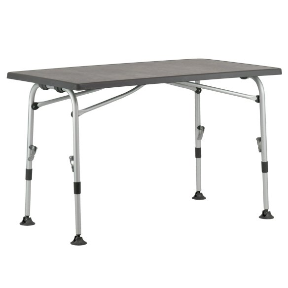 Sehr standfeste Aluminiumrohr-Tische mit einer einzigartigen, einfach zu bedienenden Exzenterverriegelung. Alle 4 Beine sind stufenlos höhenverstellbar und stabil. Wetterfeste Tischplatte.